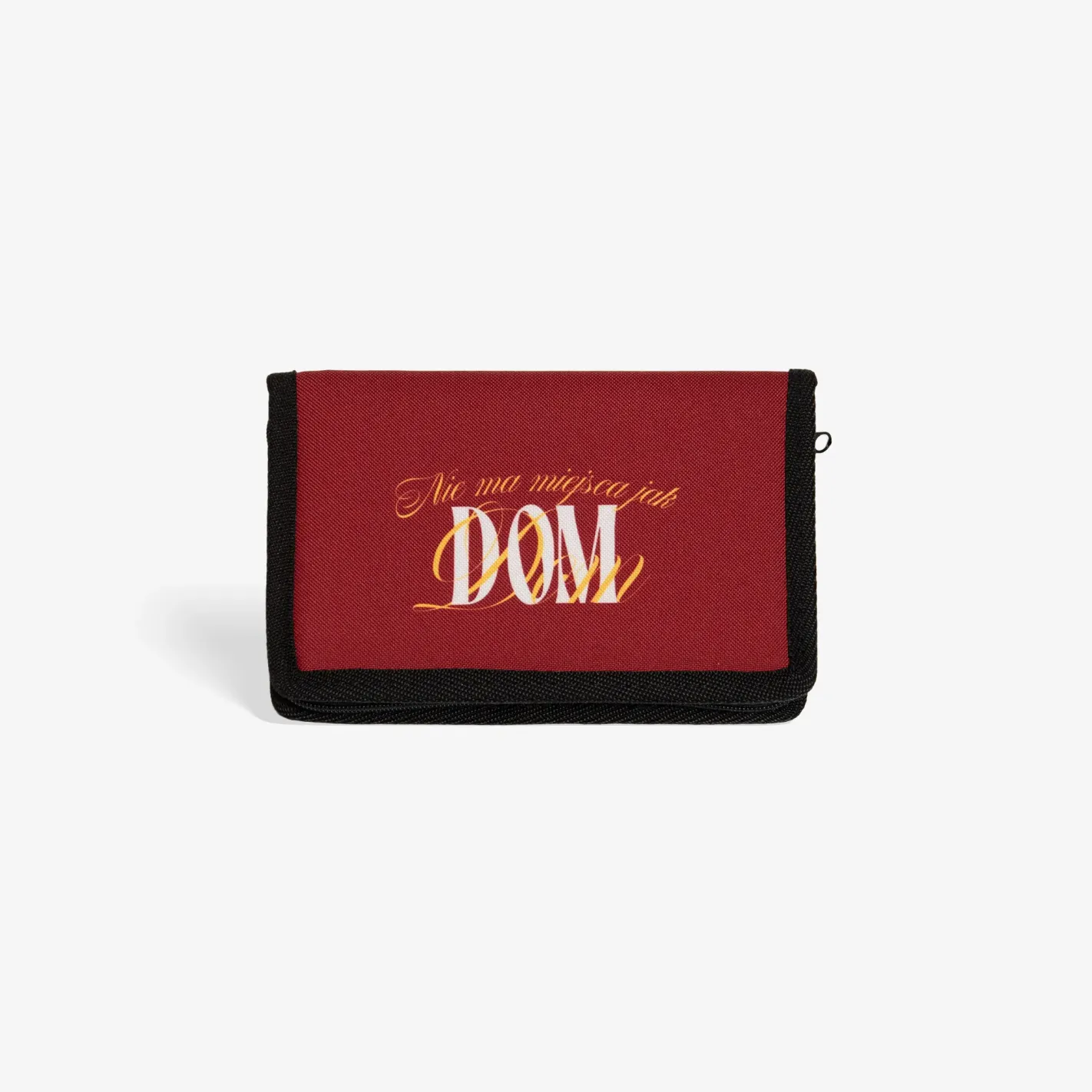 Praktyczny i stylowy piórnik w kolorze bordowym z motywem „ Nie ma miejsca jak Dom”.