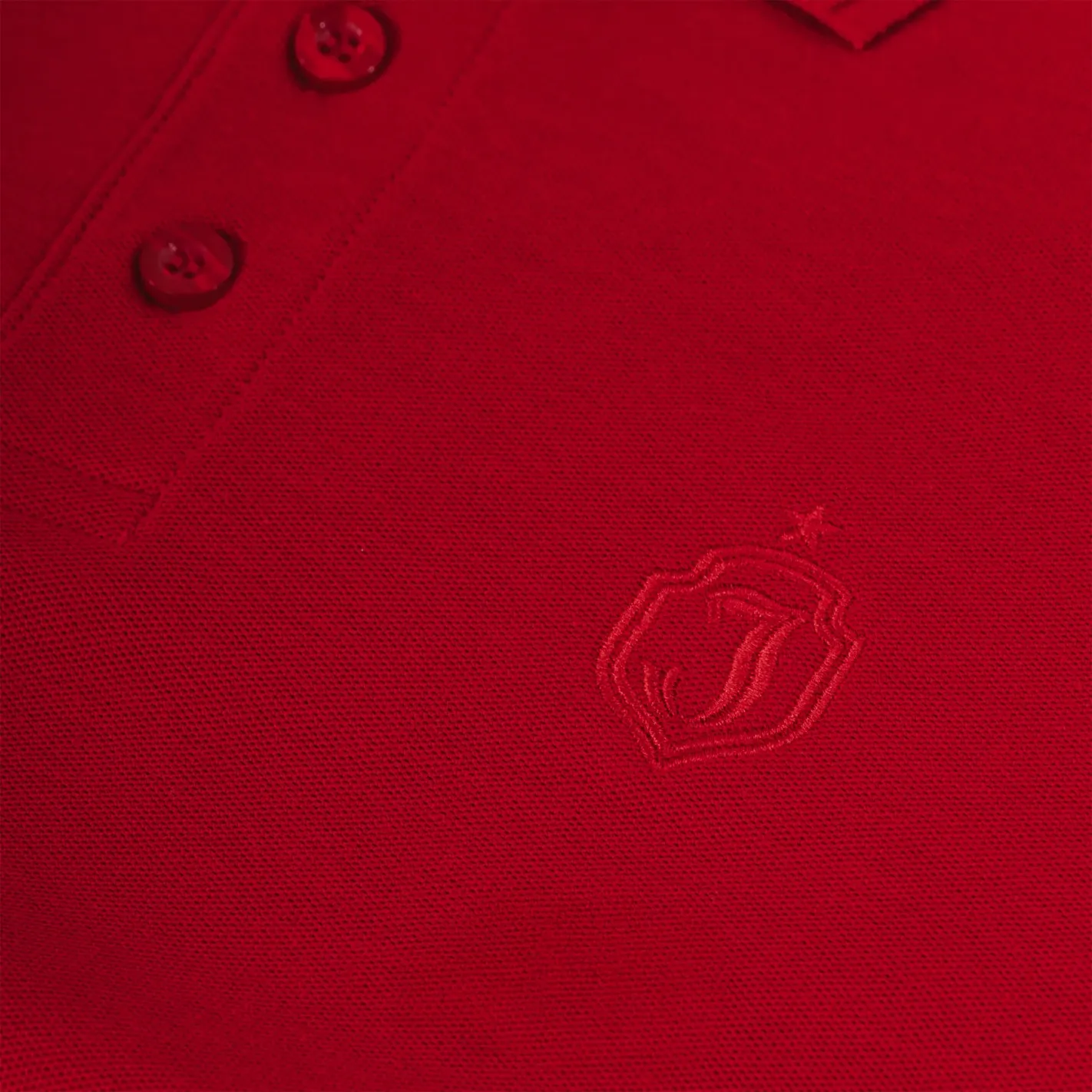 - Haftowany herb Jagiellonii na piersi o wysokości 5 cm, utrzymany w monochromatycznej czerwieni, idealnie dopasowanej do koloru koszulki