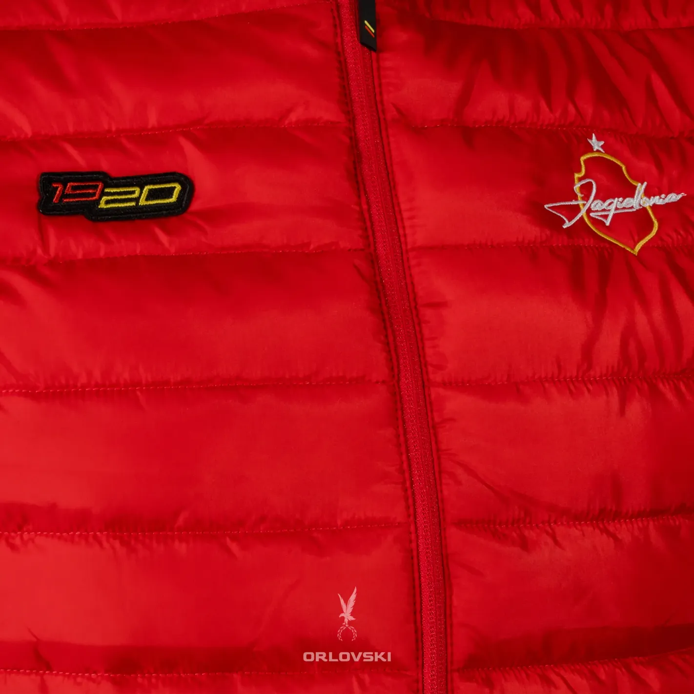 Prezentujemy bezrękawnik Jagiellonii z herbem i napisem na piersi oraz naszywką „1920” z przodu, który w chłodne dni skutecznie ogrzeje Twoje ciało.