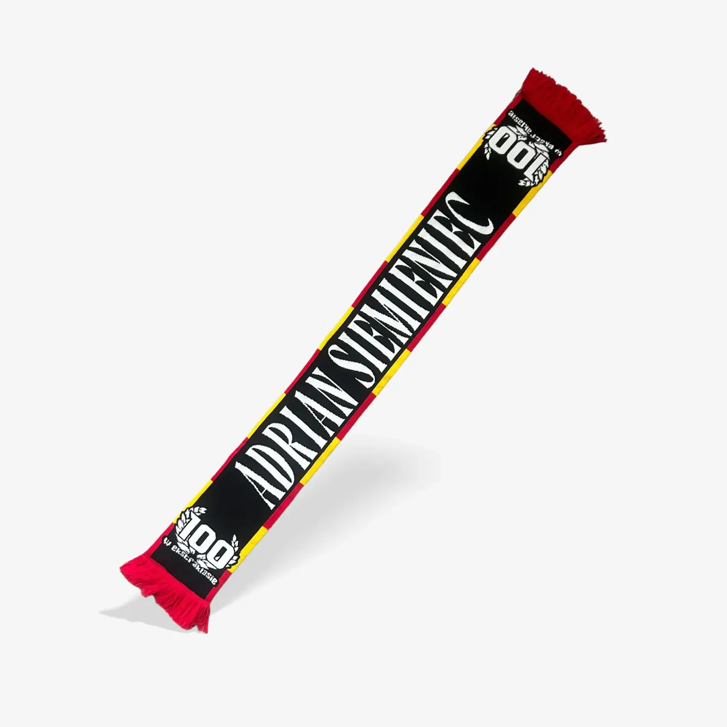 Druga strona honoruje trenera, prezentując napis „Adrian Siemieniec” oraz jubileuszowy symbol oznaczający sto meczów w Ekstraklasie